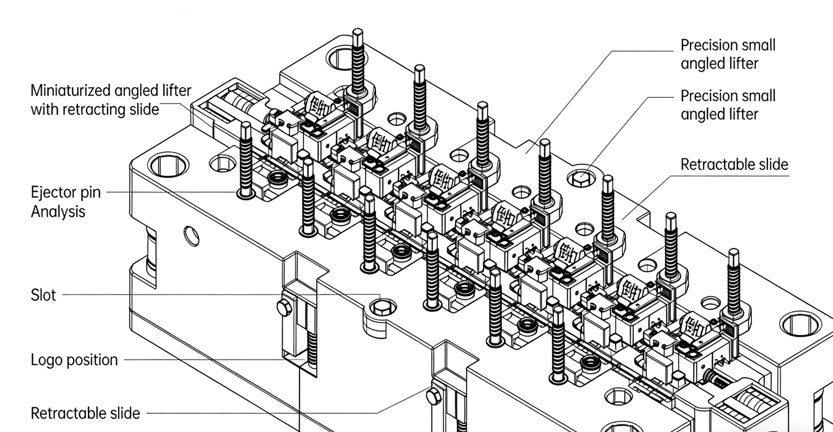 ความท้าทาย: ภายในประกอบด้วยสลักช่องใส่แบตเตอรี่ที่อัดแน่น หมุดระบุตำแหน่ง PCB และกลไกสล็อตตกแต่ง ทำให้เกิดโครงสร้างที่ซับซ้อนซึ่งเสี่ยงต่อการเกิดรอยวาบไฟ การเสียรูป หรือรอยขีดข่วนในระหว่างการถอดชิ้นส่วนวิธีแก้ไข: ออกแบบกลไกการผสมผสาน “ตัวดีดขนาดเล็กเรียวหลายกลุ่มและตัวเลื่อนแบบยืดหดได้” ตัวดีดขนาดเล็กที่มีความแม่นยำสูงขนาดกะทัดรัดช่วยแก้ปัญหาร่องด้านล่างและโครงภายในที่หนาแน่น สำหรับช่องด้านข้างหรือตำแหน่งโลโก้ สไลด์แบบยืดหดได้ช่วยให้เลื่อนออกได้อย่างราบรื่นโดยไม่ทำให้ผลิตภัณฑ์เสียหาย เค้าโครงพินของอีเจ็คเตอร์ได้รับการวิเคราะห์ความเค้นเพื่อรับประกันการดีดออกที่ราบรื่นและสมดุล